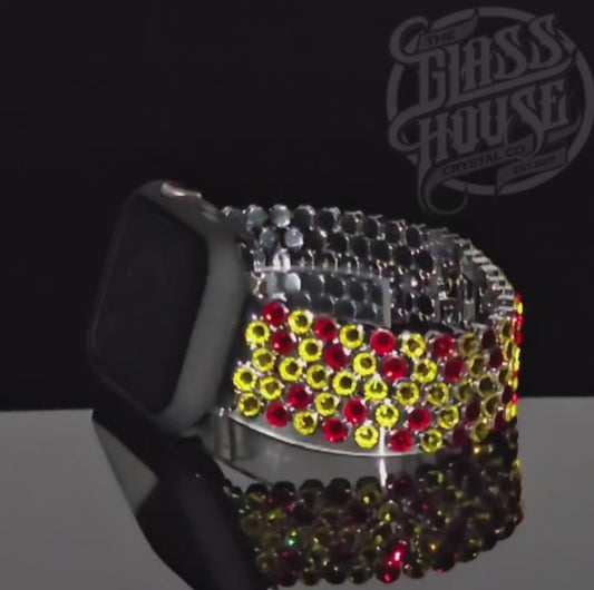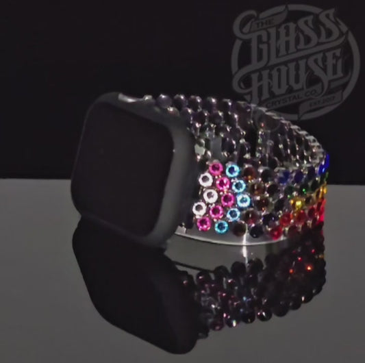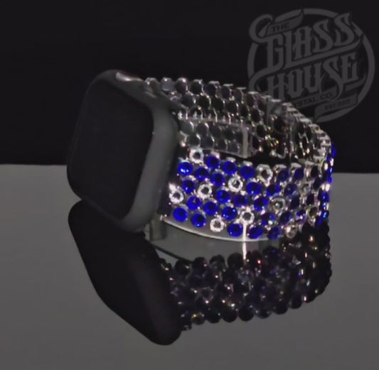 Designed to fit both Apple and Samsung smartwatches, our bands are more than functional — they’re personal. Whether you're celebrating your story, showing off your team spirit, or elevating your everyday look, there’s a design waiting to be uniquely yours. With over 100 crystal color options and multiple base finishes to choose from, the possibilities are as limitless as your style.
