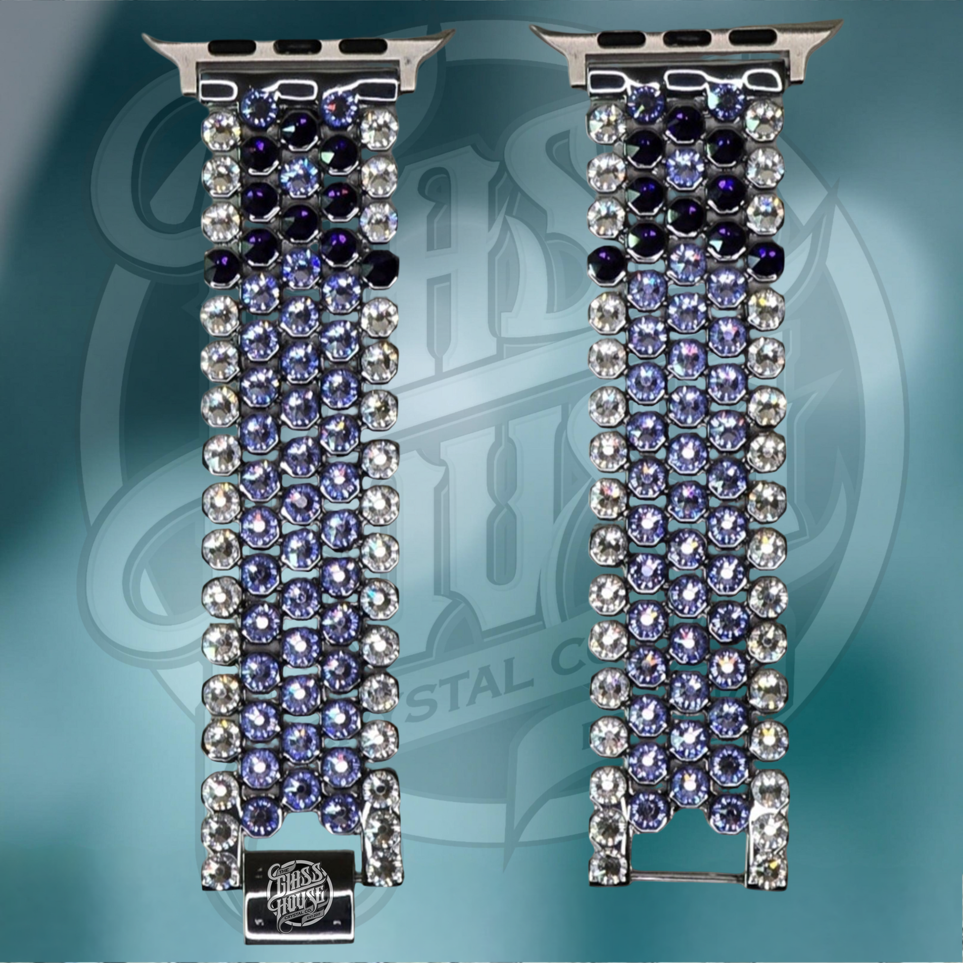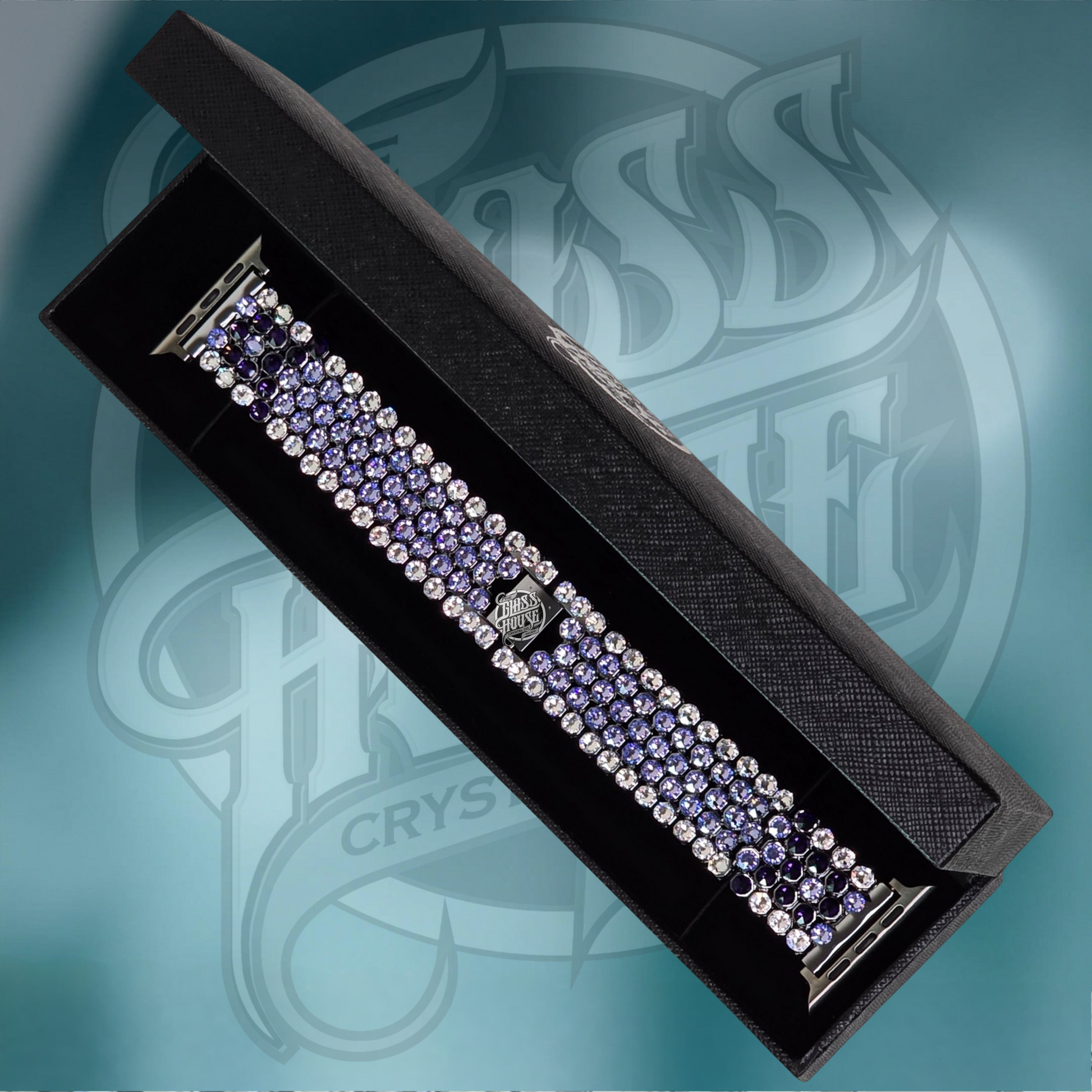 Hand-set Austrian crystals in Alzheimer’s awareness-inspired tones