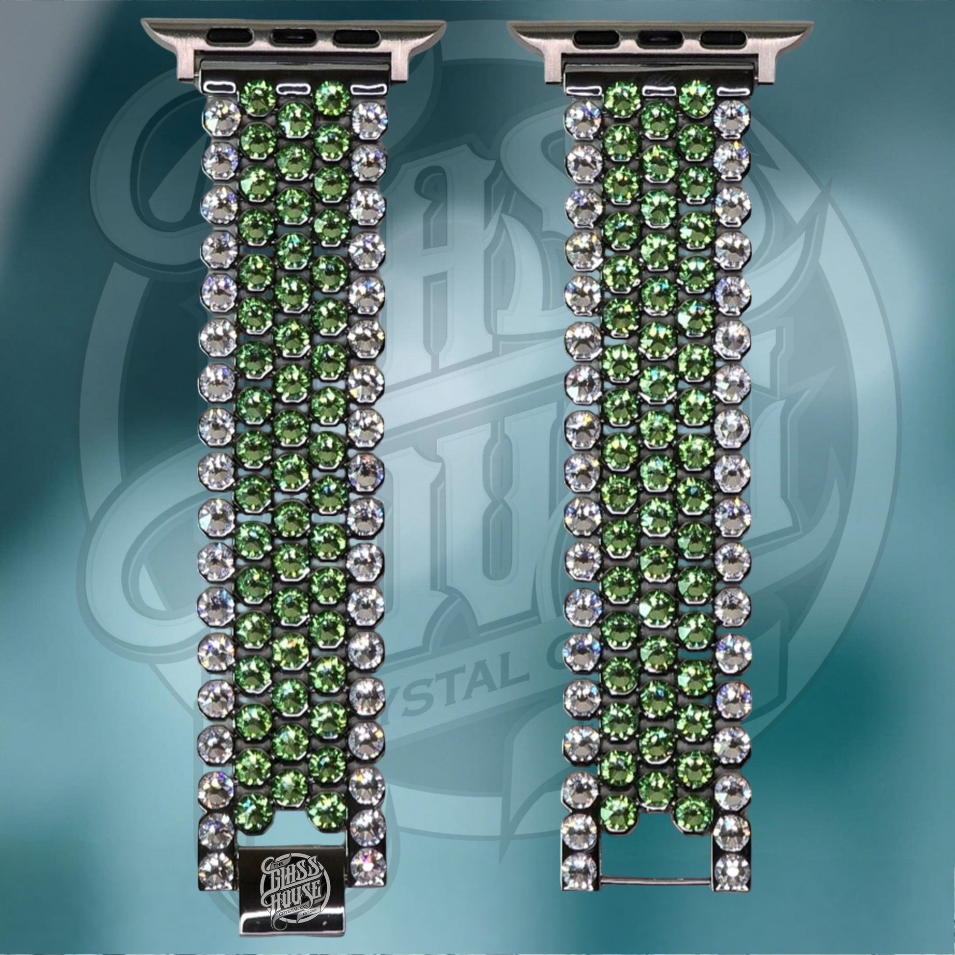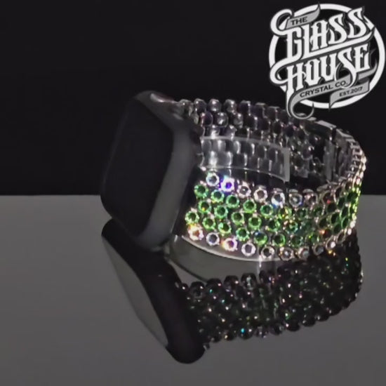 Inspired by the vibrant green glow of the August birthstone, this luxurious watchband embodies positivity, renewal, and personal strength. Featuring a brilliant peridot crystal inlay, trimmed in luminous clear crystals, each hand-set stone captures the essence of summer and the spirit of self-expression.