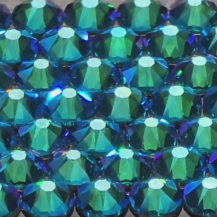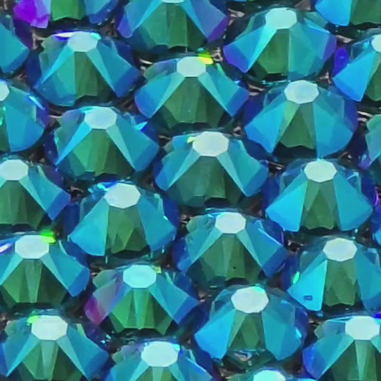 Blue Zircon Shimmer is a vibrant teal-blue crystal enhanced with the Shimmer coating, adding soft, radiant flashes of aqua, lavender, and golden light. This modern finish brings a multidimensional glow to the bold, tropical tone of Blue Zircon, giving it a dreamy, iridescent quality. Perfect for eye-catching, playful, or ocean-inspired designs, Blue Zircon Shimmer adds energy, elegance, and light-filled sparkle to any creation.