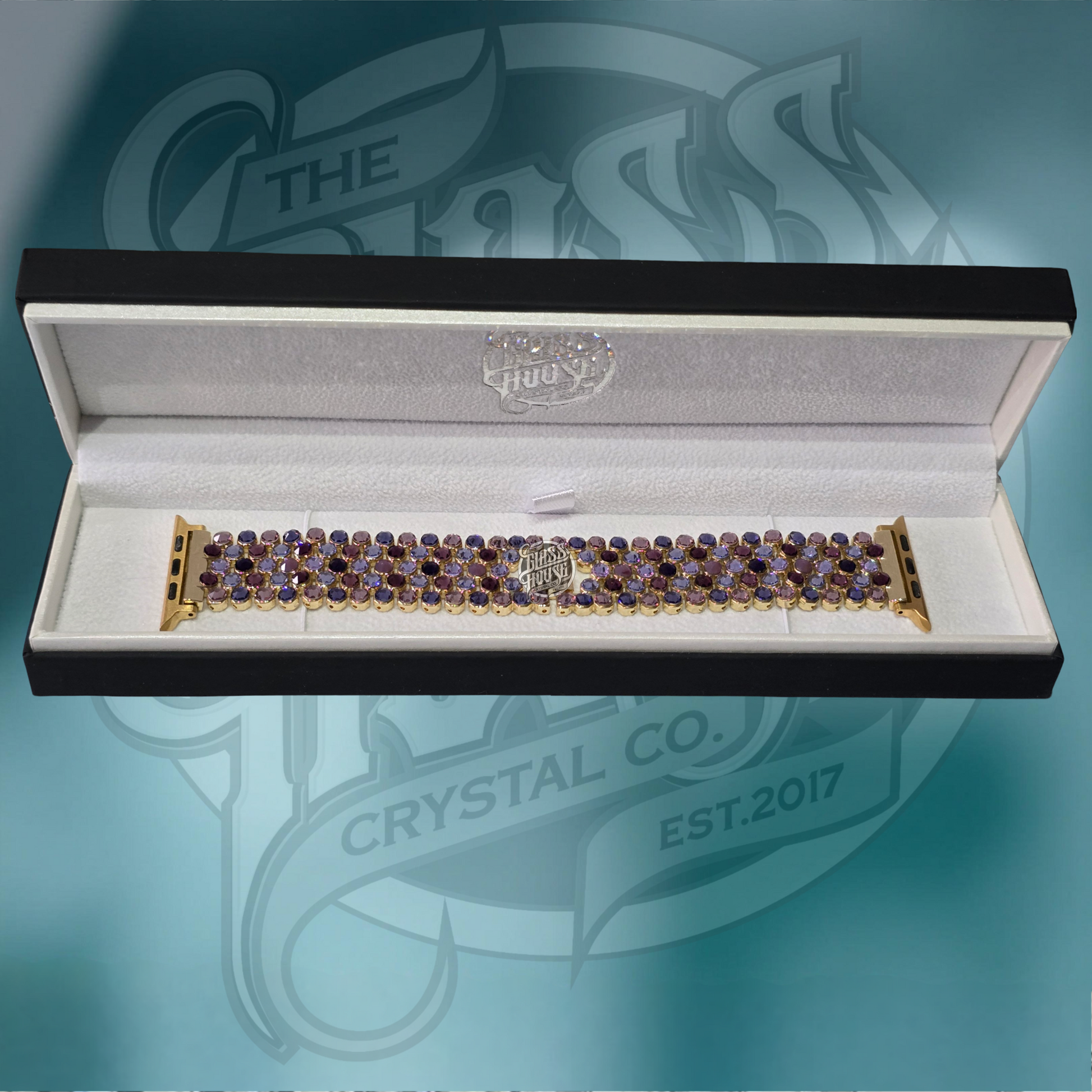 Elegant, moody, and endlessly captivating — the Purple Reign watchband celebrates the full spectrum of violet beauty in one stunning design. Each crystal is meticulously hand-set to create a seamless blend of soft lilacs, lush plums, and deep royal purples that shimmer with dimension and grace.