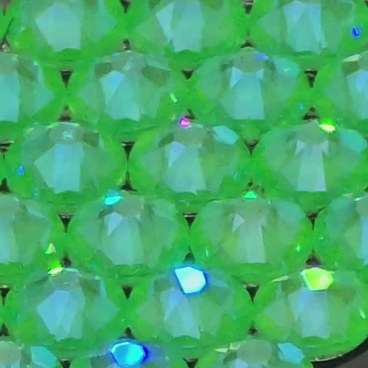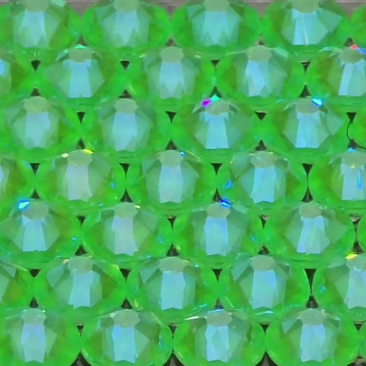 Electric Green Delite is a vibrant, glowing green crystal infused with the signature Delite coating, creating a luminous inner radiance and soft, frosted shimmer. Its bold, neon-like hue is tempered by a velvety finish, offering both energy and elegance. Reminiscent of fresh spring leaves and electric light, Electric Green Delite is perfect for eye-catching, nature-inspired, or futuristic designs that call for vivid color with a refined, radiant glow.