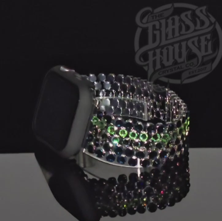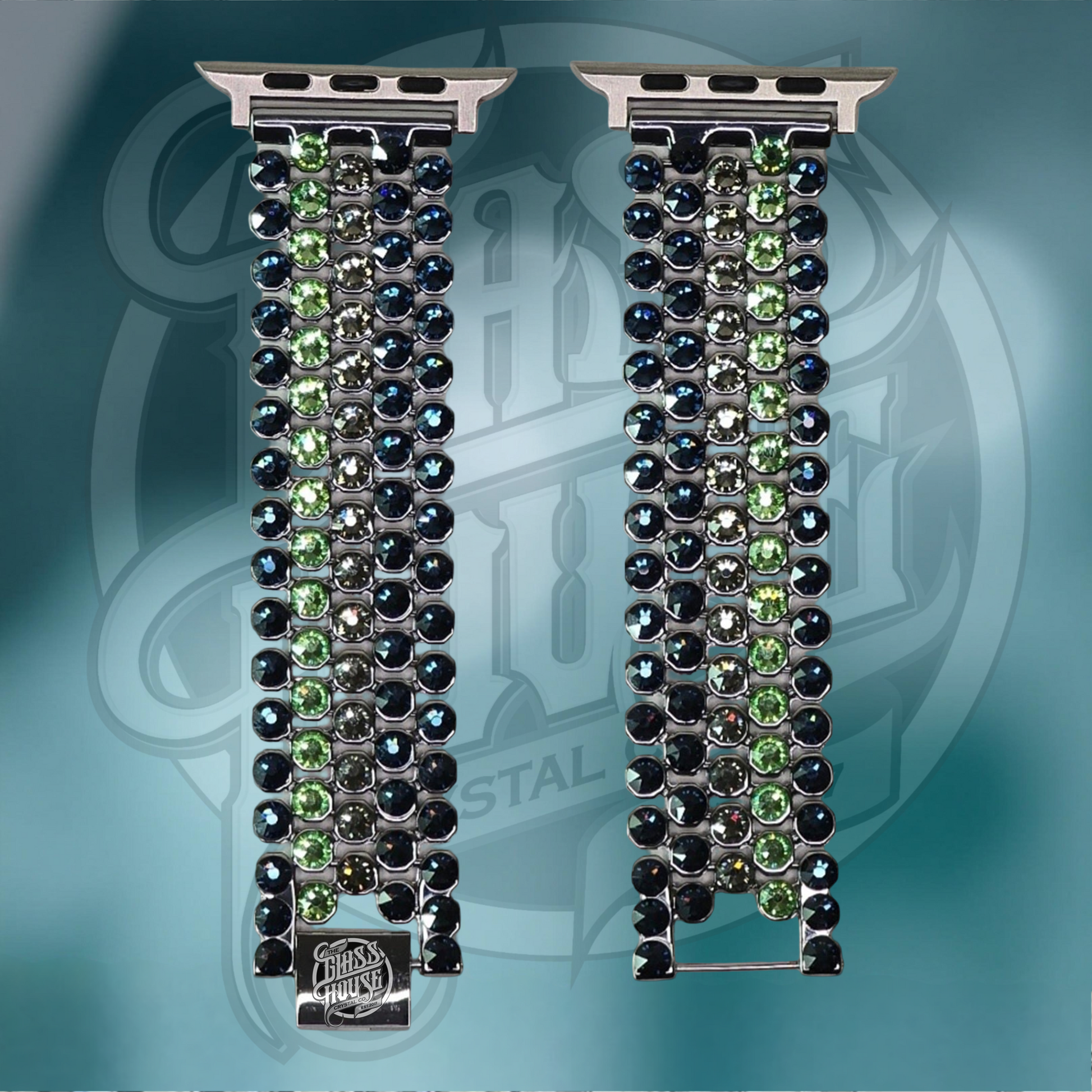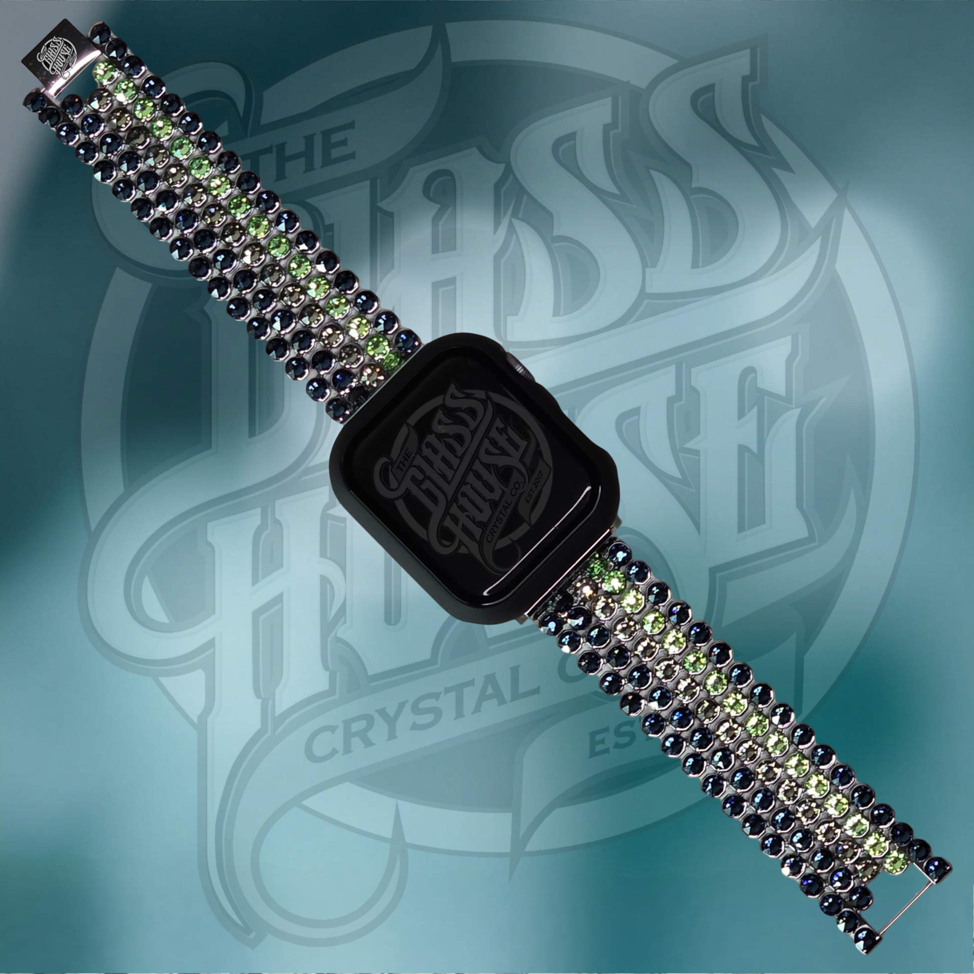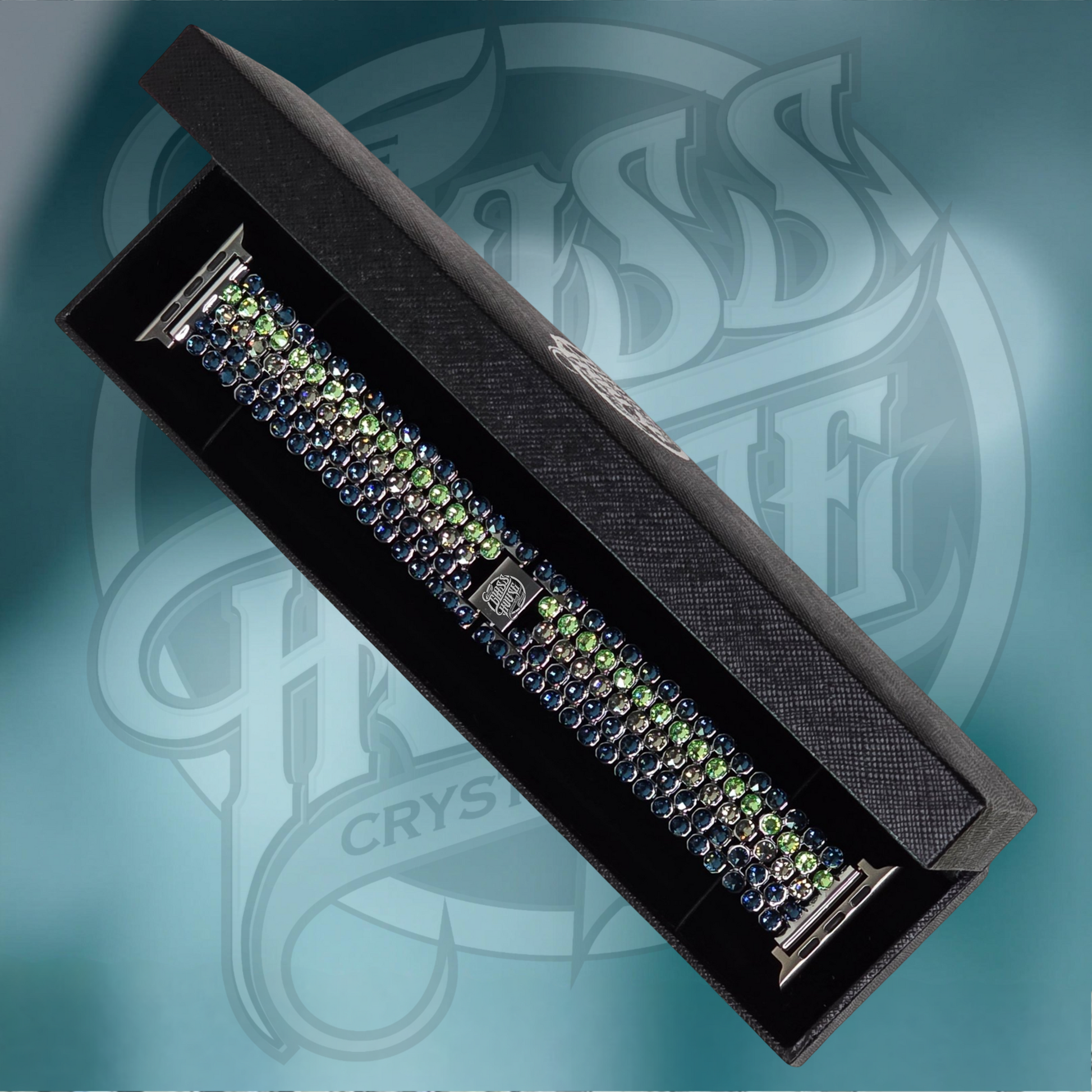 Show your Pacific Northwest pride with the Seattle Football watchband — a bold, statement-making piece designed for those who bleed blue and green. Featuring a deep navy-toned crystal background and an off-centered stripe in electric green and smoky silver hues, this design captures the energy, grit, and passion of Seattle’s beloved team.