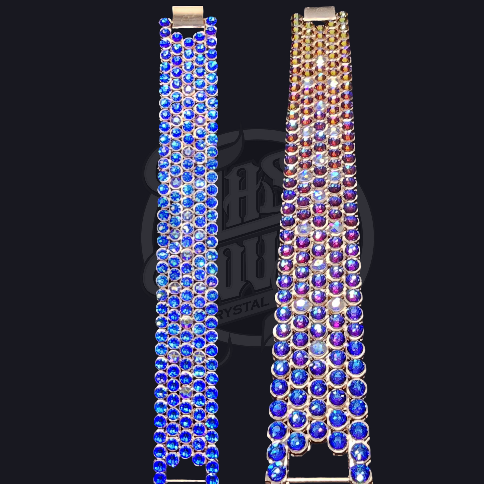 She lovingly calls this bracelet “Starry Night.” With the rich blues of Meridian reflecting twilight’s glow and the star-cut crystals twinkling like constellations, this piece is a wearable galaxy — a reminder that beauty shines brightest against the dark.