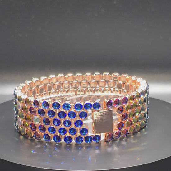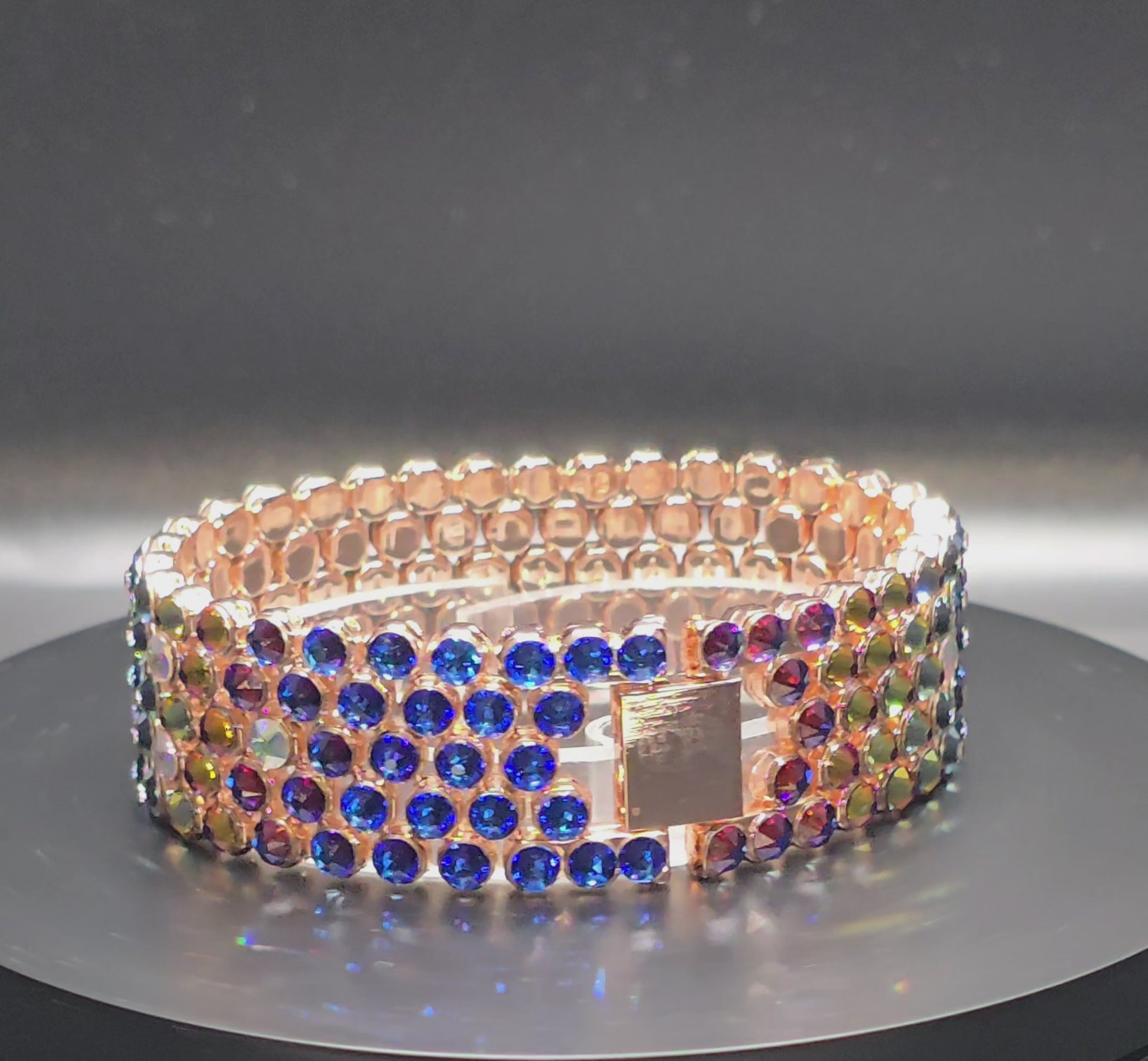 Some designs carry not just beauty, but a name and meaning all their own. One of our wonderful repeat clients came to us with a vision for her next custom bracelet: a rose gold band adorned with the mesmerizing depth of Meridian Blue crystals.