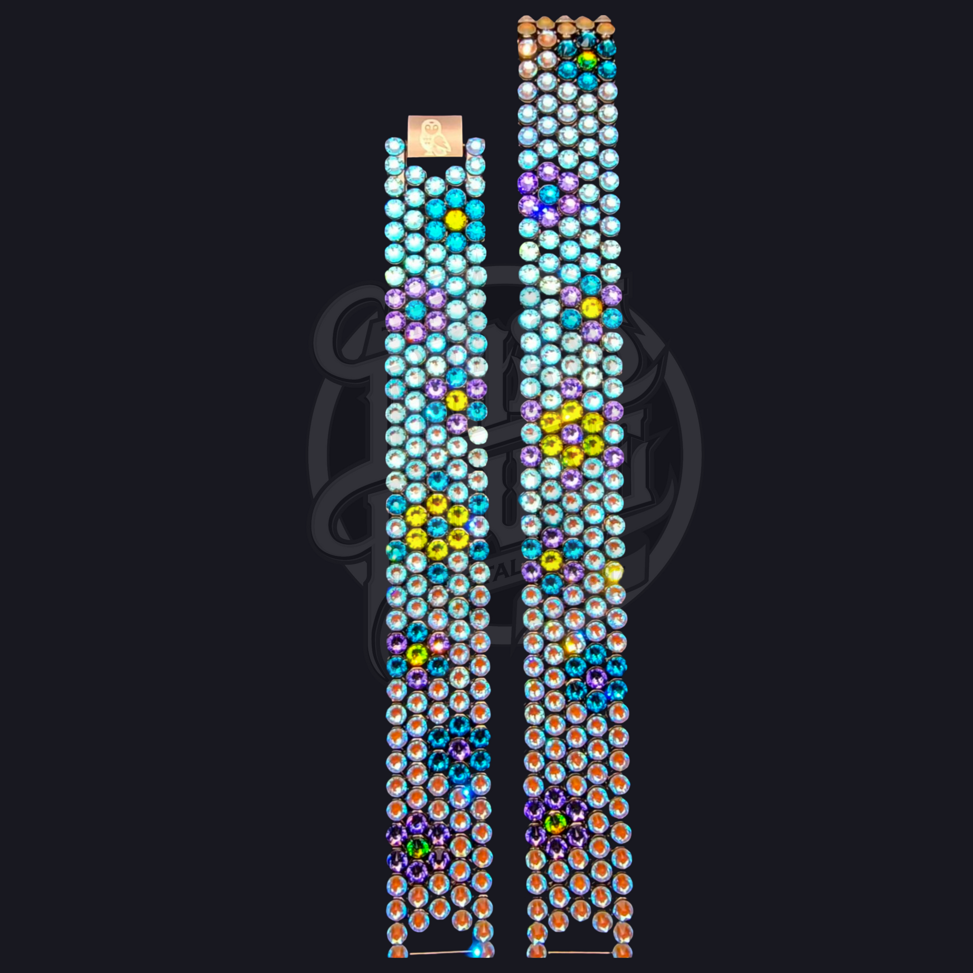 To honor that bond, she carefully chose Tanzanite, Indicolite, and Vitrail Medium — colors from her mother’s bracelets that hold deep meaning. These vibrant shades were arranged in a floral pattern, set against the soft, luminous background of Serene Gray Delite. Each flower represents love, support, and the intertwining strength of family.