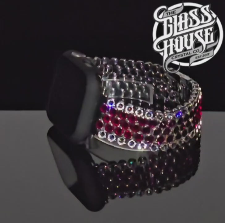 Passionate, powerful, and full of fire — this July Birthstone Watchband radiates the vibrant energy of the ruby. Featuring a rich ruby crystal inlay surrounded by a brilliant trim of clear crystals, this striking design celebrates love, confidence, and inner strength in every detail.