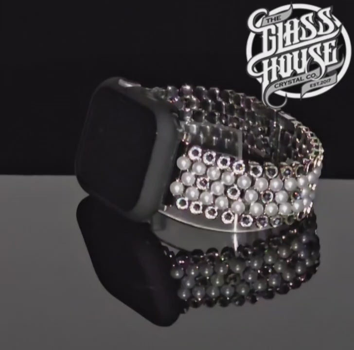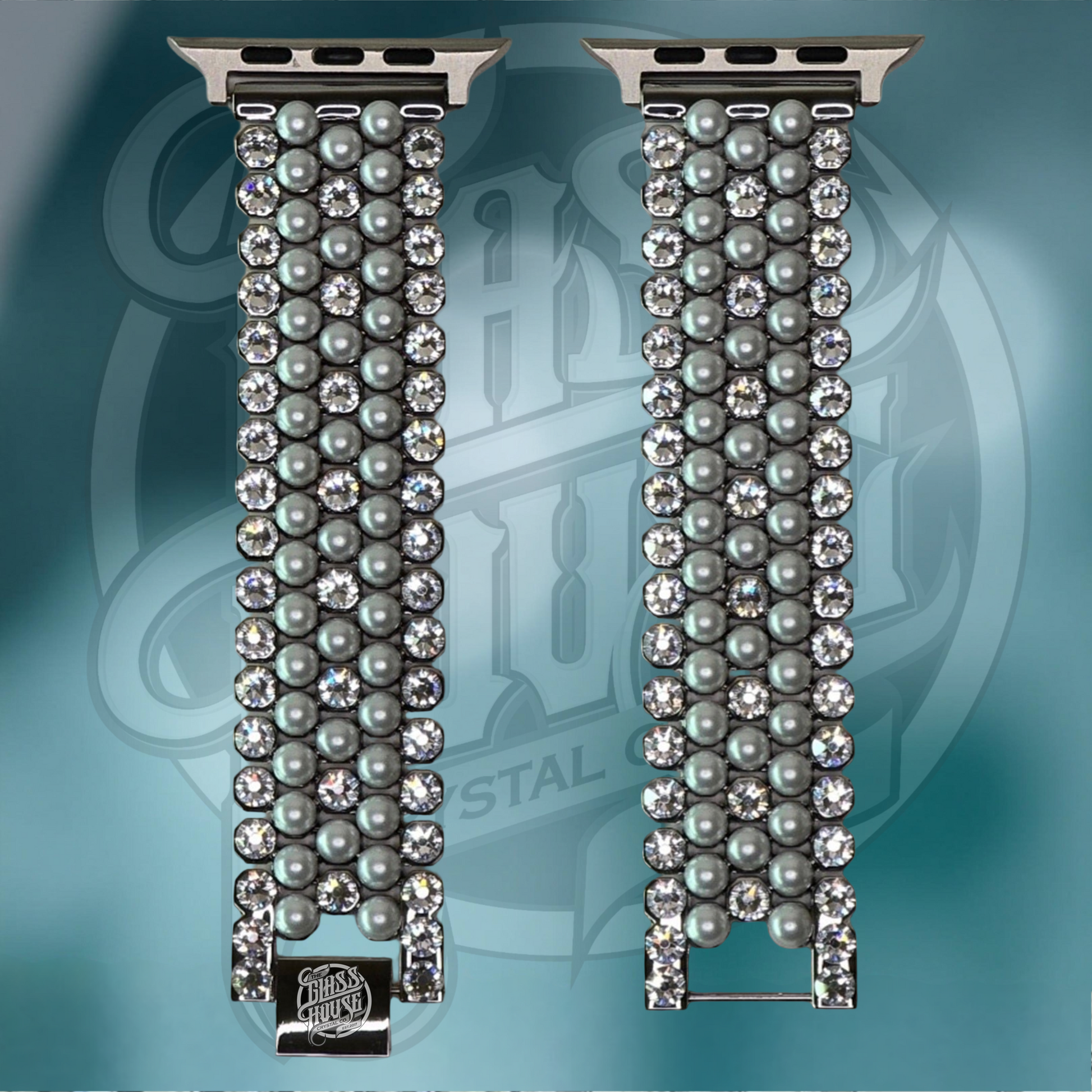 Delicate yet enduring, the June Birthstone Watchband captures the ethereal beauty of the pearl — a symbol of wisdom, intuition, and serenity. Featuring a luminous blend of pearl and crystal inlay, elegantly framed by sparkling clear crystal trim, this design radiates quiet sophistication and timeless charm.
