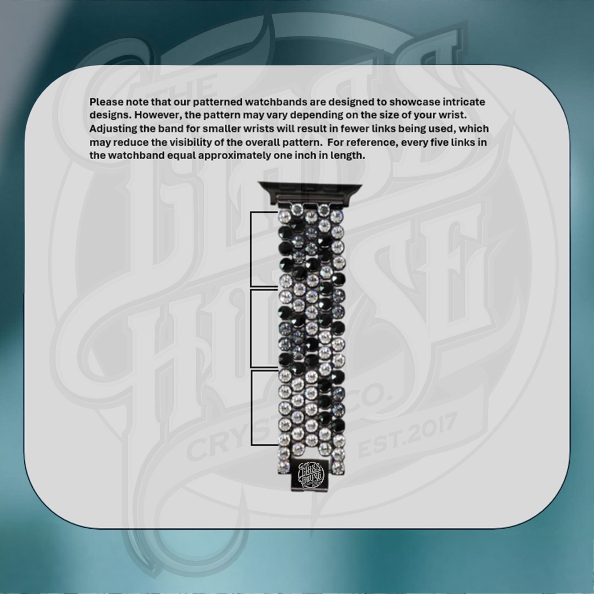 Cool, captivating, and fiercely elegant — the Snow Leopard watchband brings a high-contrast twist to a timeless wild print. Featuring a crystal-clear base with sleek, smoky grey spots edged in bold black, this design evokes the powerful beauty of its namesake with a luxurious edge that sparkles in every light.